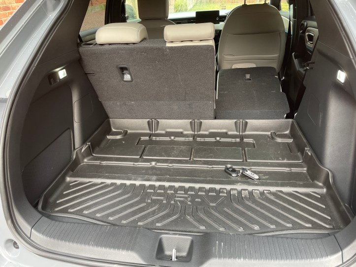 In my last career job at JLR, the public interview was fronted by an ex-Swindon Manufacturing Director, who had moved to Castle Bromwich Jaguar plant. He stood up to address the room full of interviewees, so a public audience and proclaimed that if he wanted a reliable car to drive to the moon, he would pick a Honda Jazz. Anyway, back to the HR-V. Feature-wise, it is all there, heated seats included. The switch shows a heated screen logo, the centre-rear set belt is one of those two-point latches and the panoramic roof has manual sun-shades, with those in the rear being in two removable sheets! The usual Honda thumb-wheel gives access to the trip computer and other menus, not the most simple one to use but you soon get your head around it.